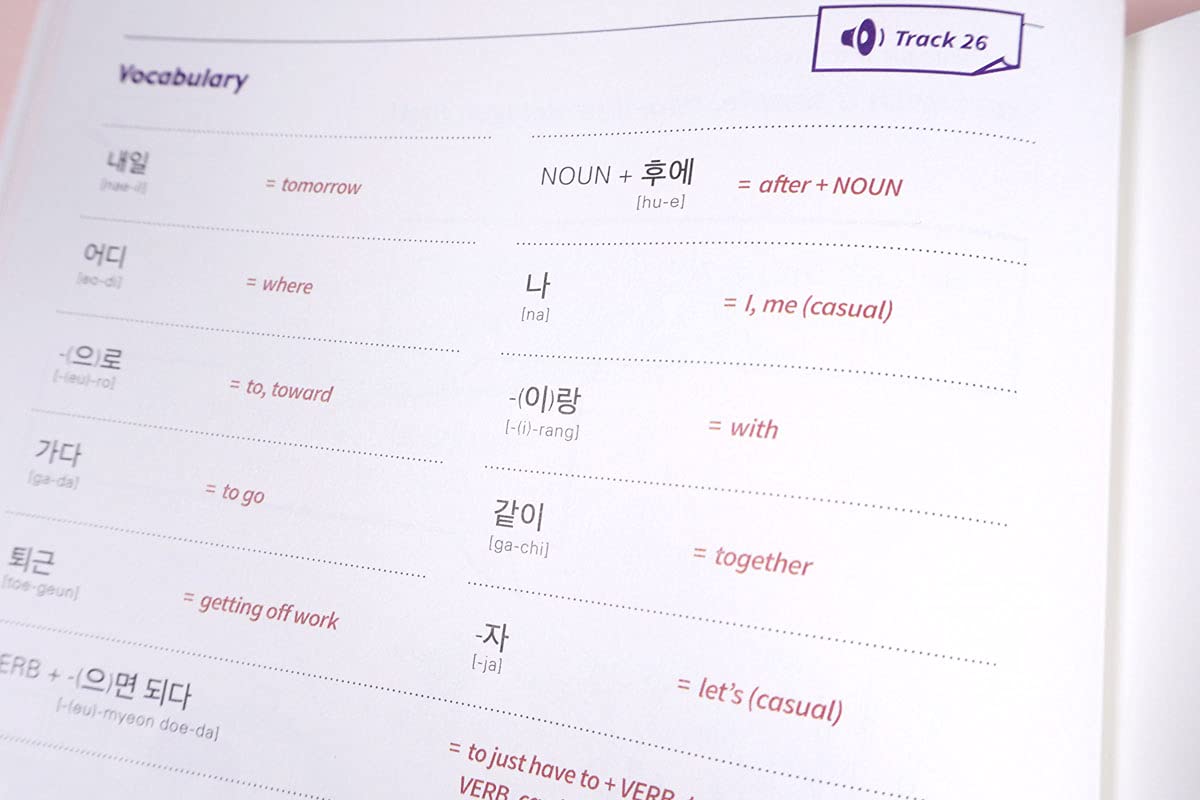 يتميّز الكتاب ببناء تدريجي للمفردات والتعابير، إلى جانب شرح مبسّط يسهّل فهم التراكيب الأساسية. كما تترافق المحادثات مع ترجمات وتوضيحات تساعد القارئ على تحسين مهارات الاستماع والتحدّث بثقة أكبر. يُعد هذا الكتاب خيارًا مثاليًا لمن يبدأ رحلته في تعلّم الكورية ويرغب في التواصل بشكل طبيعي وفعّال.