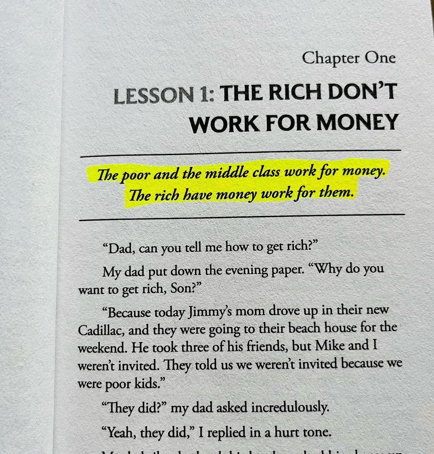 الكتاب يشرح الفرق بين العمل من أجل المال وبين جعل المال يعمل من أجلك، ويكشف أساسيات:
