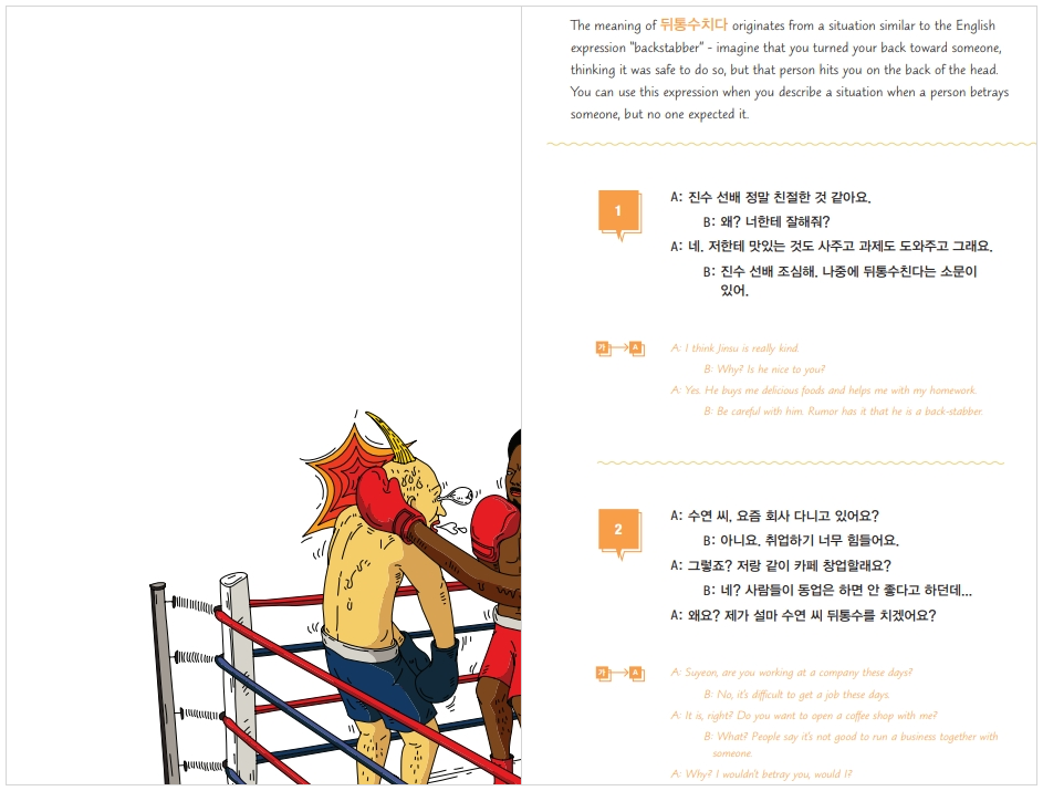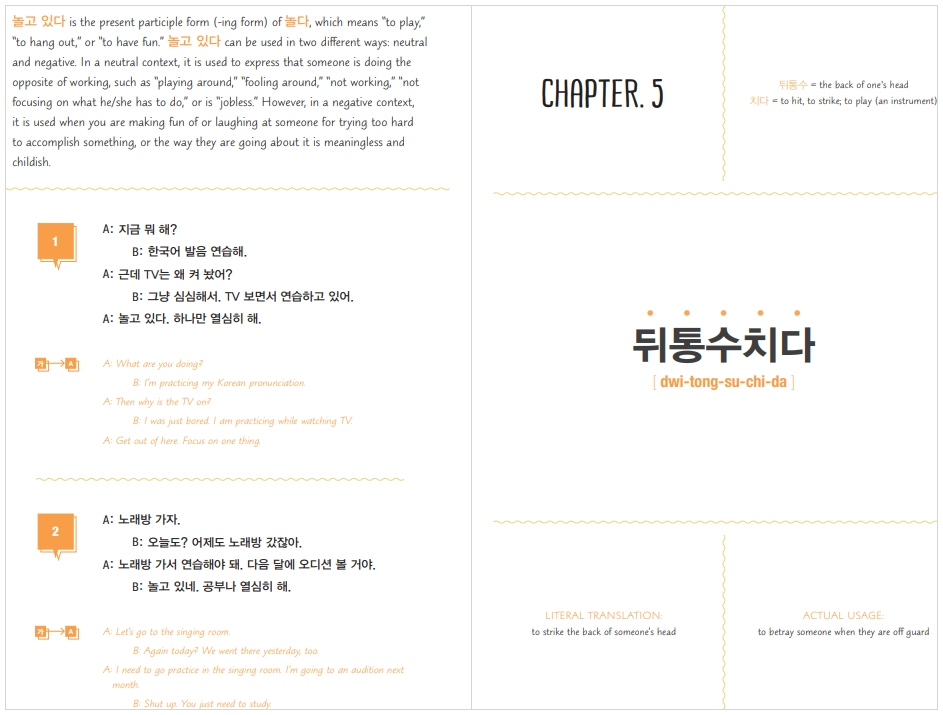كتاب Everyday Korean Idiomatic Expressions من سلسلة Talk To Me In Korean يجمع أهم التعابير الاصطلاحية المستخدمة يومياً في اللغة الكورية، مع شرح مبسّط وأمثلة عملية تساعد المتعلم على فهم المعنى الحقيقي خلف كل تعبير واستعماله بشكل طبيعي مثل المتحدثين الأصليين. مناسب للمتعلمين الذين يريدون الارتقاء بمستواهم من الفهم النظري إلى التعبير السلس والمتقدّم في الحياة اليومية.