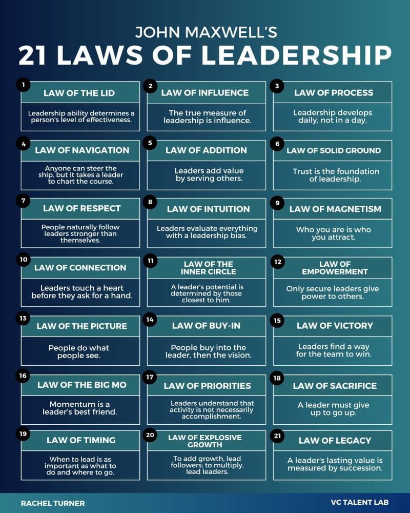 كتاب The 21 Irrefutable Laws of Leadership للكاتب John C. Maxwell يُعد من أهم المراجع في فن القيادة وتطوير المهارات الإدارية والشخصية.