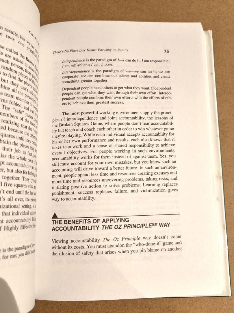 كتاب The Oz Principle للكاتب Roger Connors يقدّم إطارًا عمليًا لتحمل المسؤولية الشخصية والمهنية لتحقيق النجاح الفردي والجماعي.